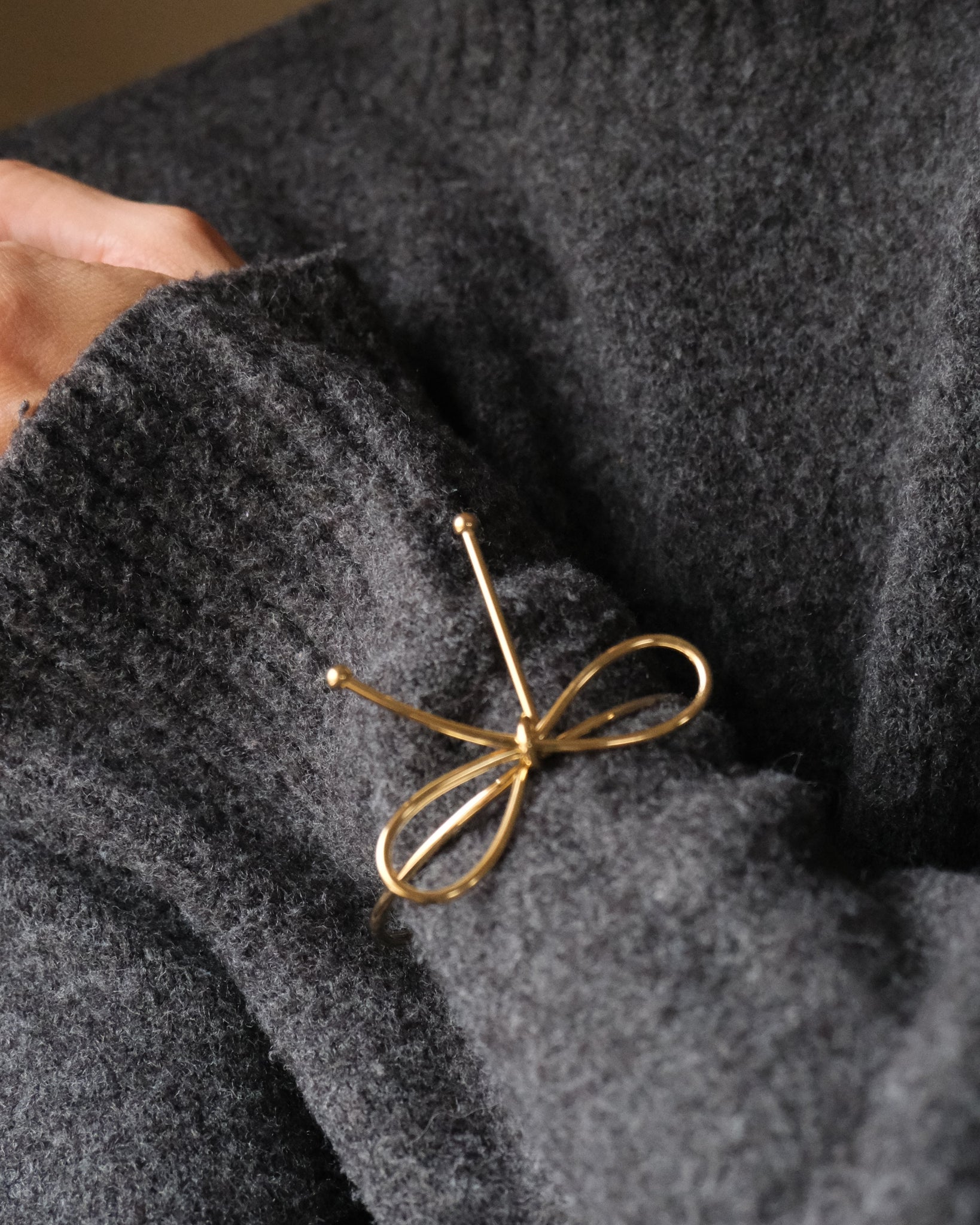 Bracciale rigido a forma di fiocco, sottile e raffinato, perfetto per aggiungere un tocco di luce anche sulle maniche di maglioni o camicie.