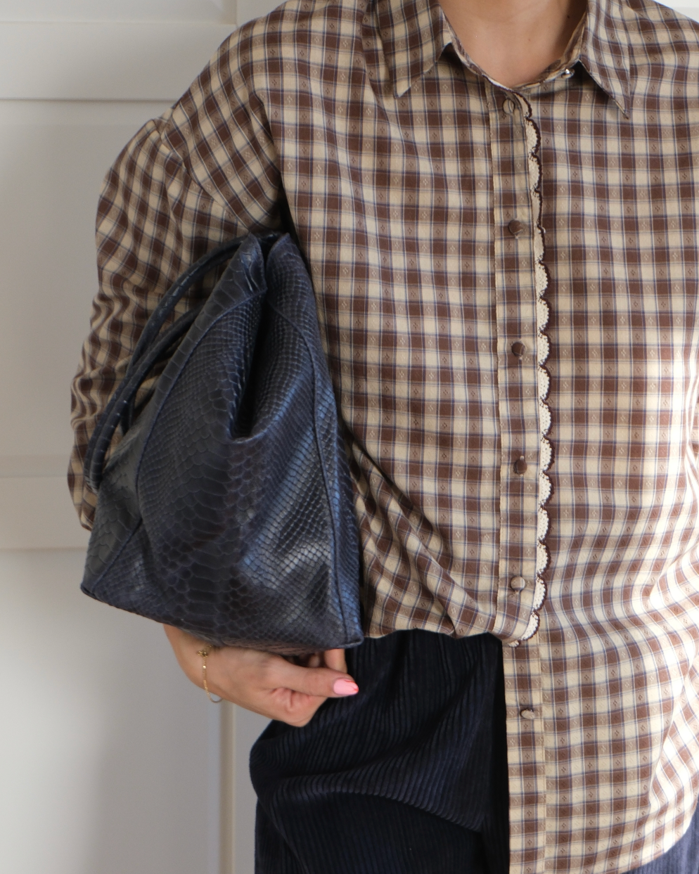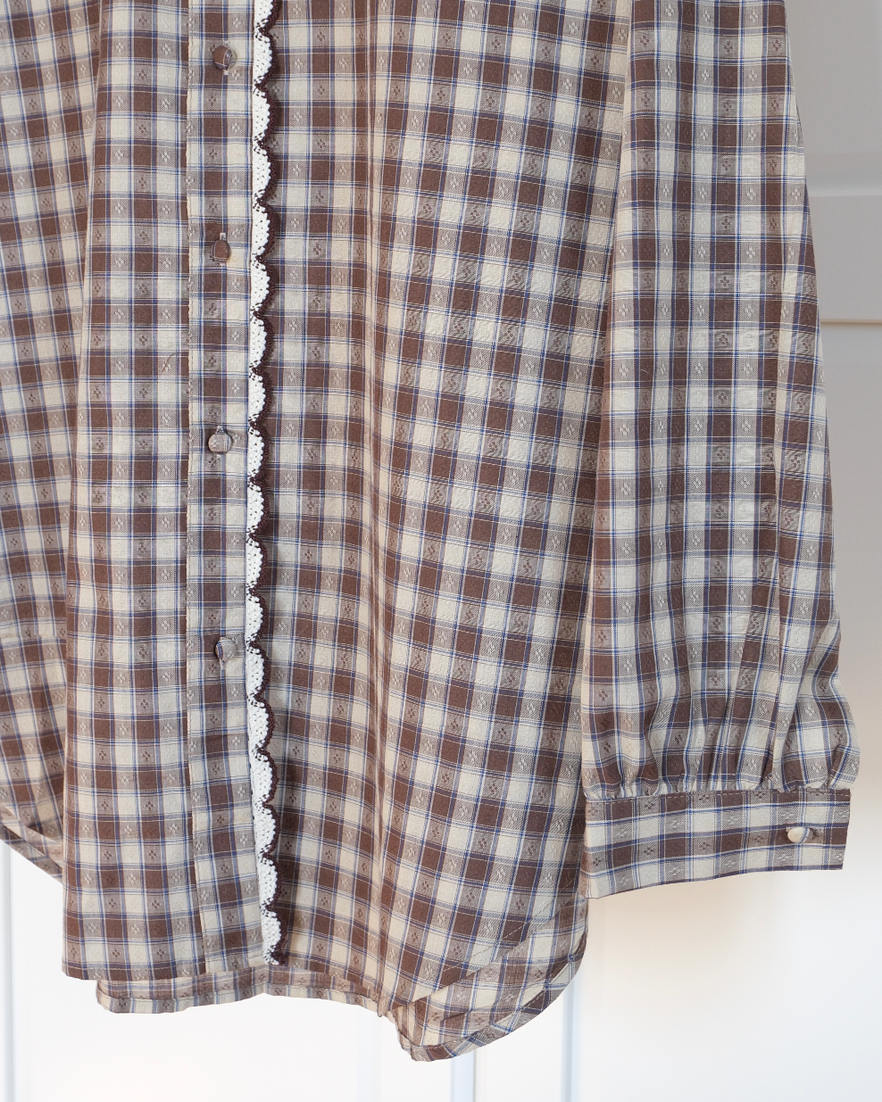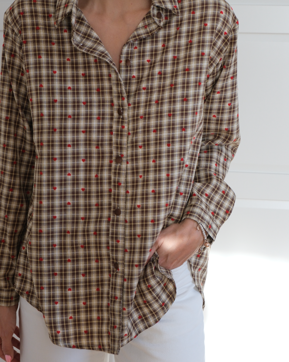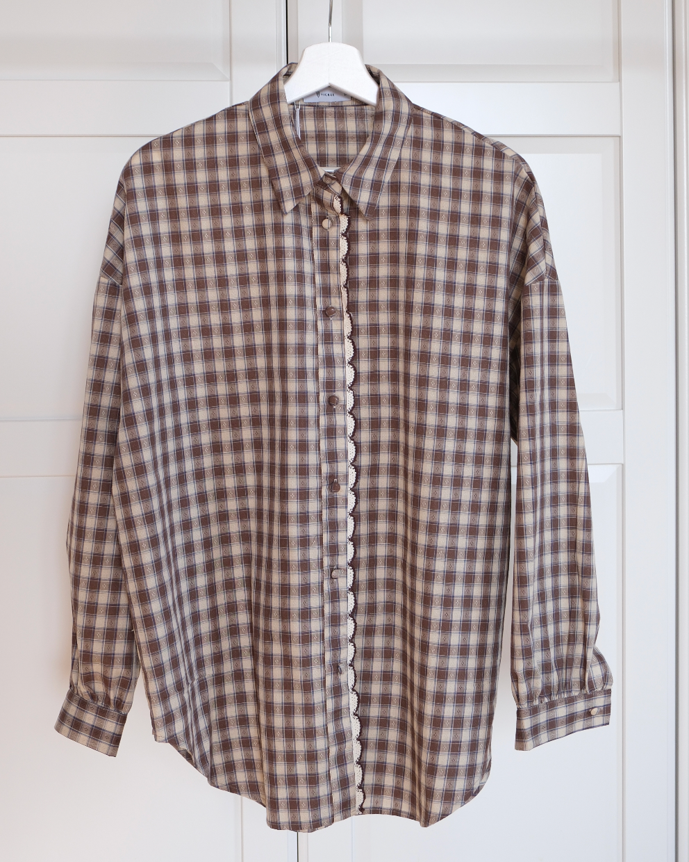 Camicia in cotone a fantasia quadretti dai toni neutri e dettagli super curati.