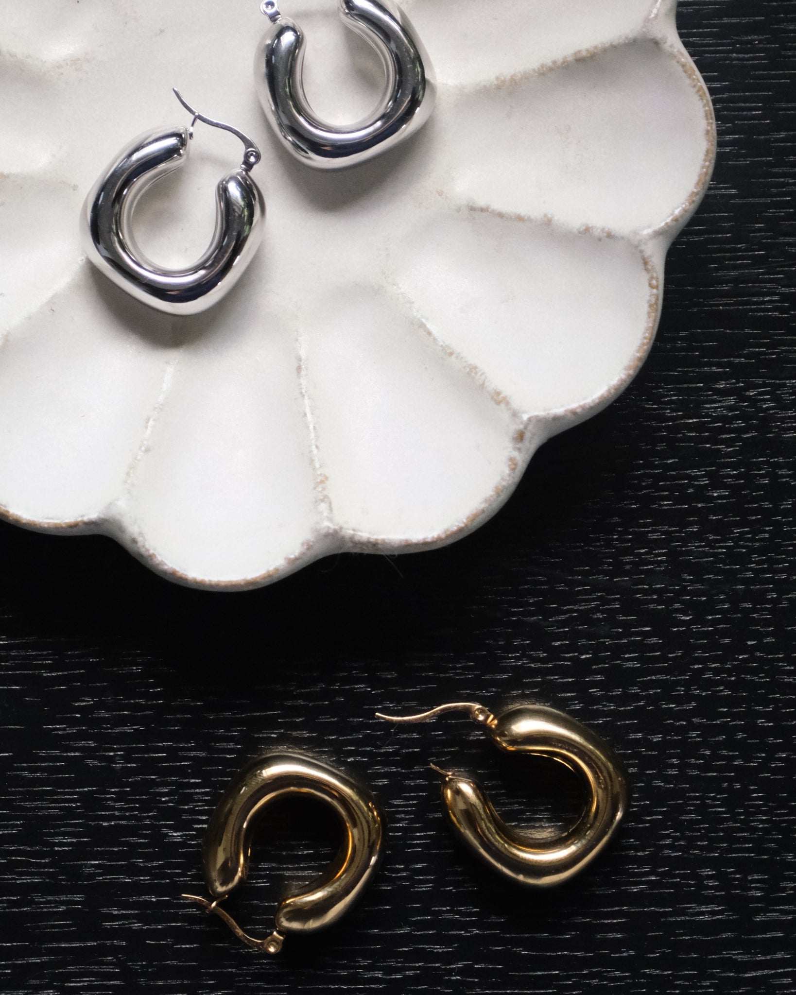 Orecchini bold, leggeri e super luminosi, dalle linee moderne e easy chic.