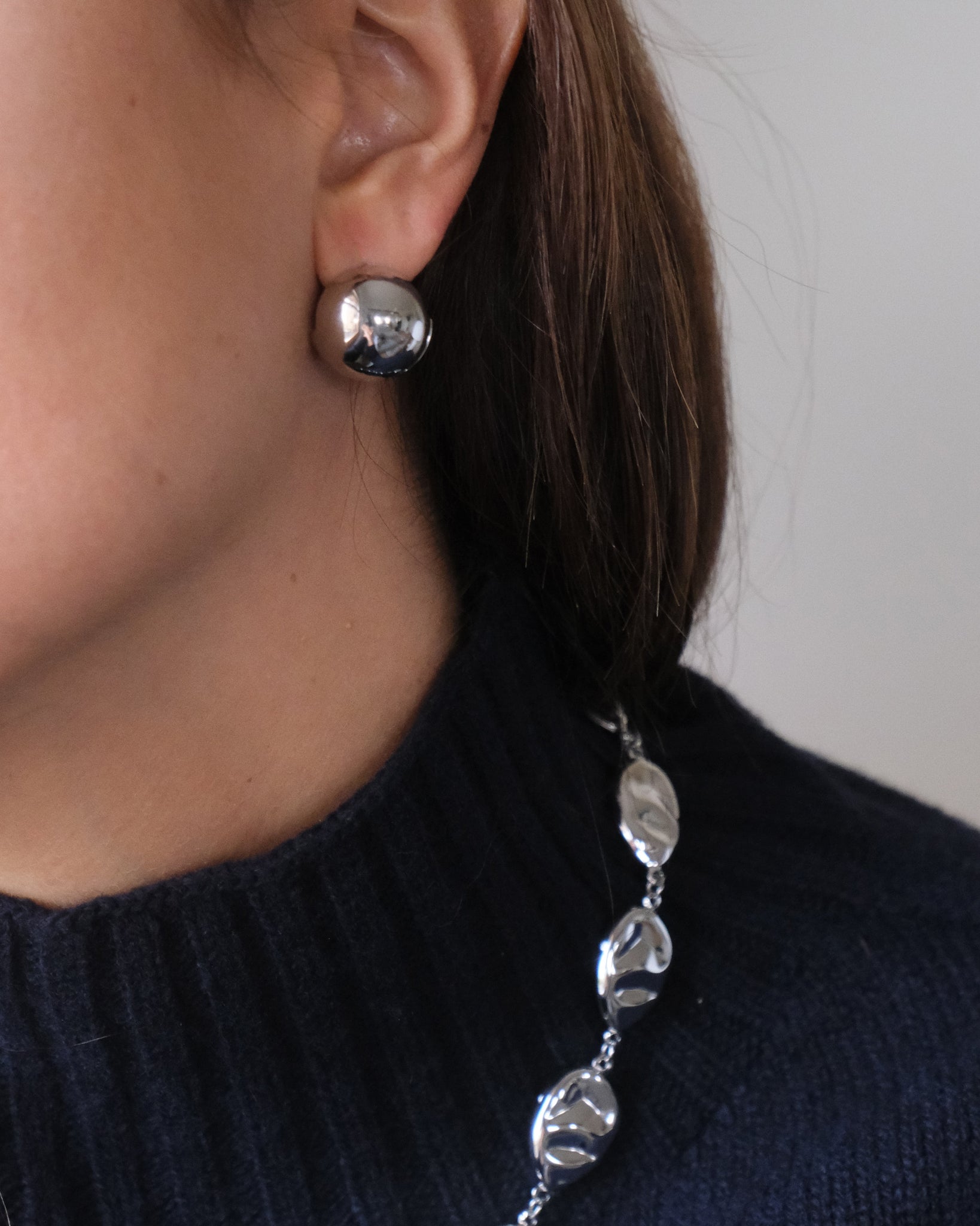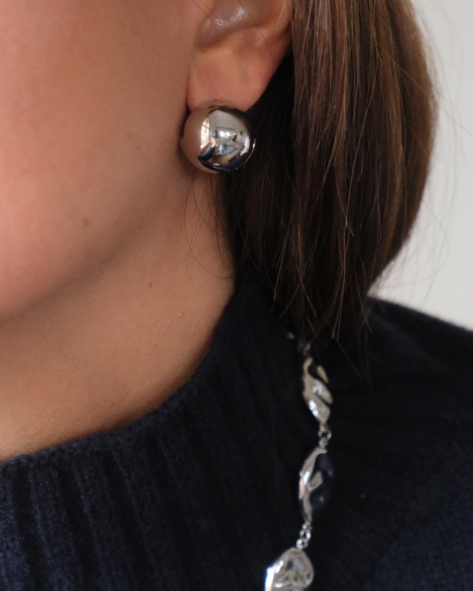 Orecchini a sfera, piccoli e leggeri, in acciaio anallergico placcato argento, discreti e super chic.